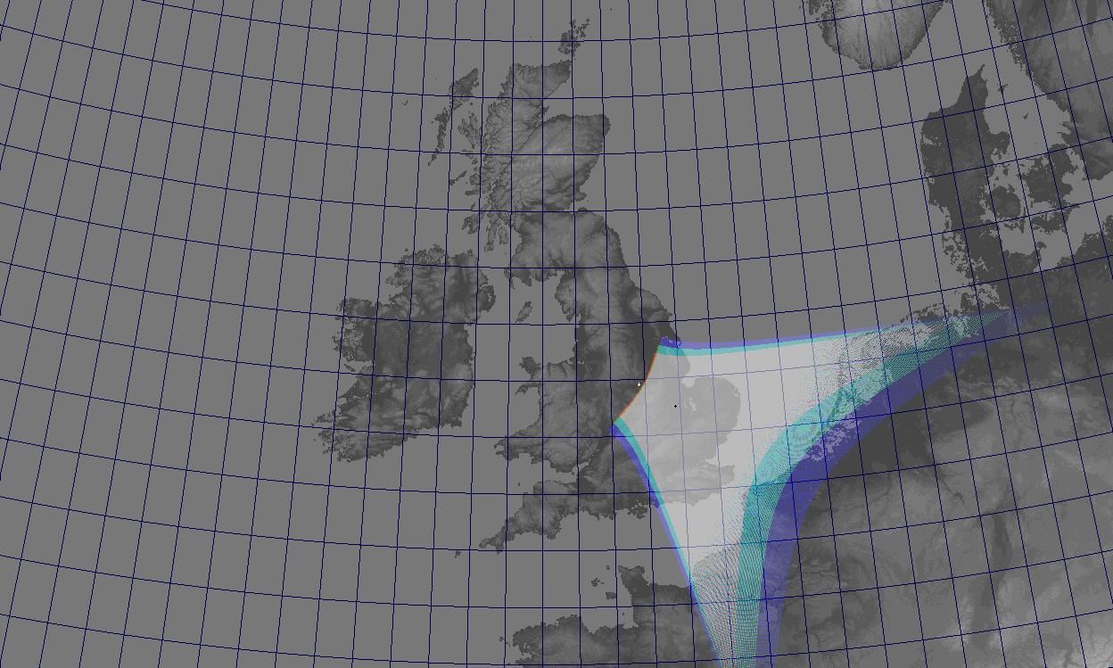 While light pollution limits where James can mount and point cameras, the skies to the east, south and south west of him offer the best views for meteor detection. His first meteor camera, which came online in early August 2015, is directed towards his south east, covering East Anglia and the South East.
