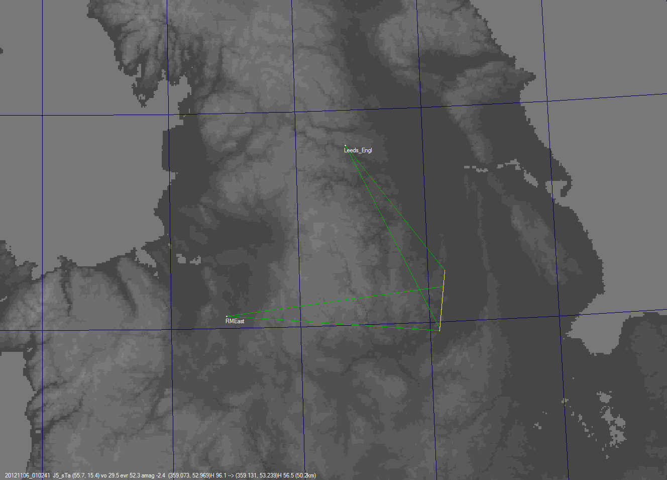 Bright Meteor of 06th November 2012 at 01:02:41 GMT A magnitude -2.4 Southern Taurid. The capture from Leeds shows the meteor passing through Orion.